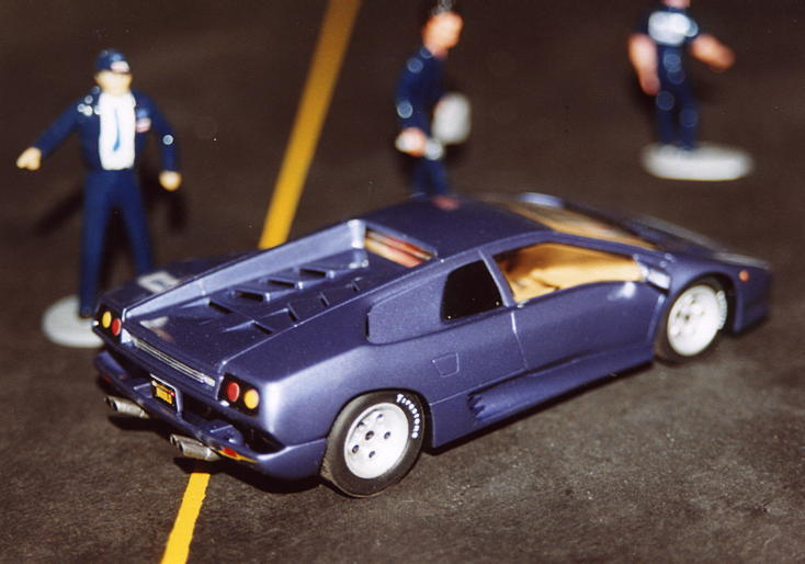 Das gleiche Bauprinzip, wie ich es beim Revell-Countach beschrieben habe, gilt auch für den aus der gleichen Serie stammenden Diablo, einen Steckbausatz im Maßstab 1:32 aus dem Hause Revell. Ebenso wie beim Schwesterauto war für mich der Anreiz, den schön sichtbaren Innenraum komplett beizubehalten und unter die Motorraumabdeckung den Motor zu platzieren.