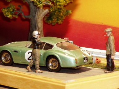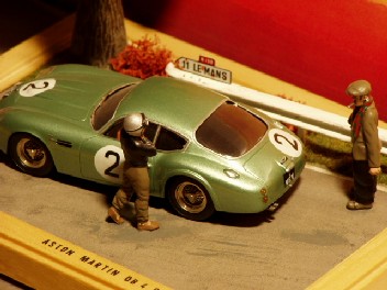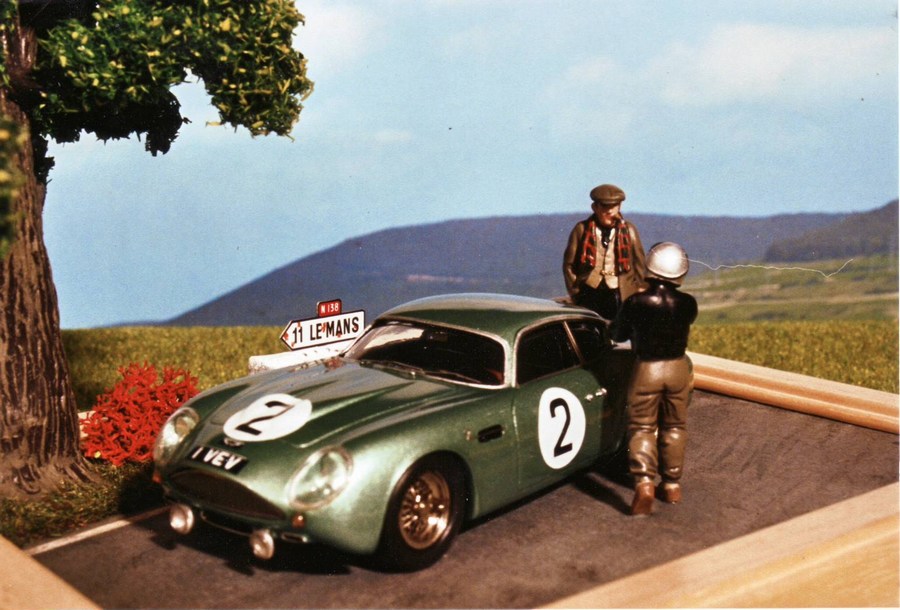 Das Kennzeichen "1 VEV" des Aston Martin ist recht berühmt geworden, allerdings durch die Teilnahme dieses Wagens an anderen Rennen wie z.B. Spa. Da dieser Renner in der 3. Stunde in LeMans mit Motorschaden ausfiel, habe ich hier (wohl unbewußt) genau diese Szene gewählt...