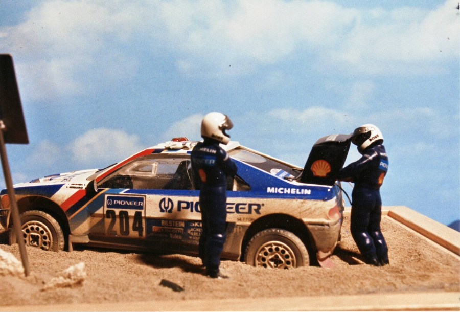 Wüstendiorama der Rally Paris-Dakar in 1:43 mit einem Auto von