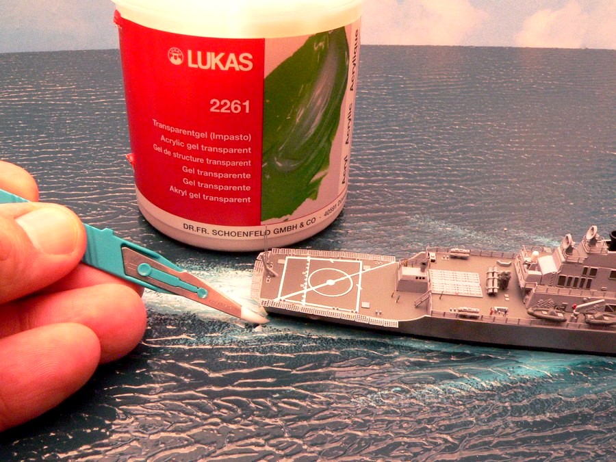 transparent befestigt. Aus dieser Paste gestalte ich auch die Bugwelle